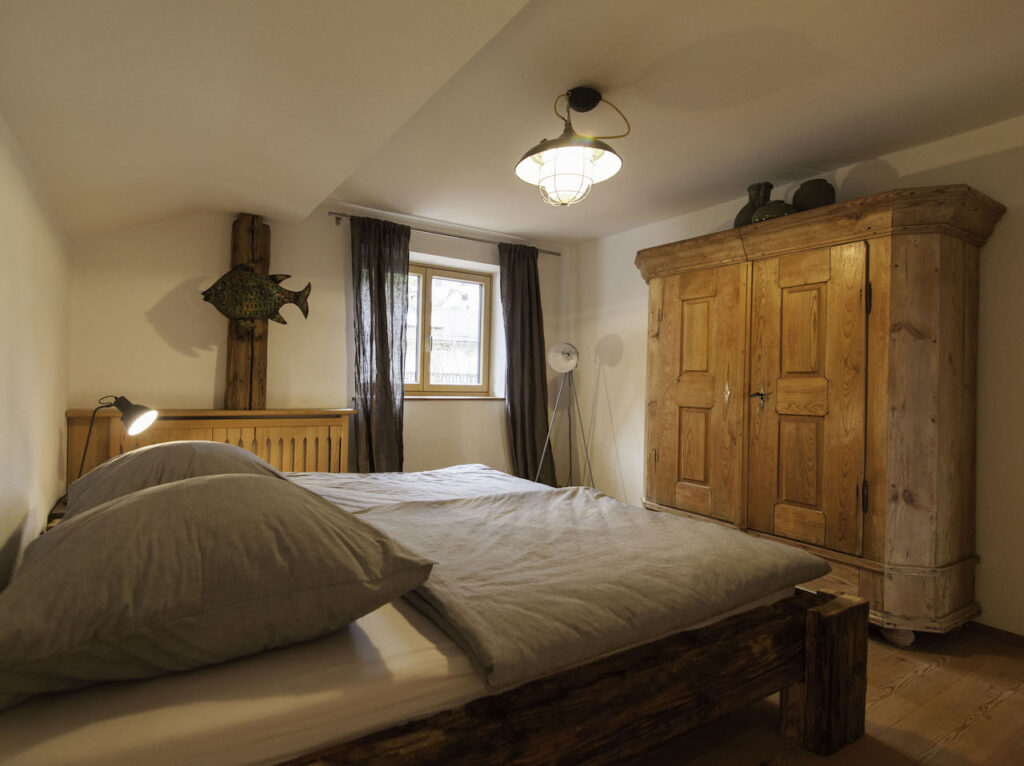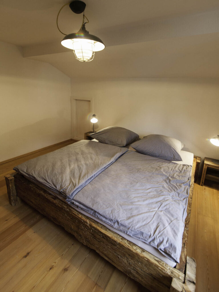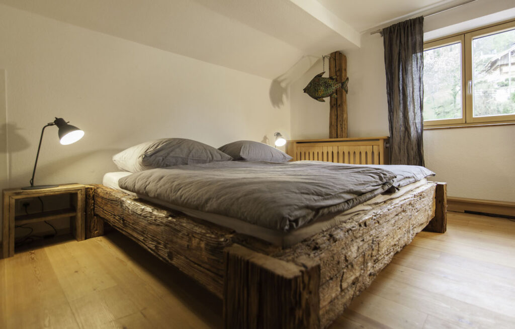 Im Schlafzimmer befindet sich ein großes Doppelbett (Maße: 200 x 180).