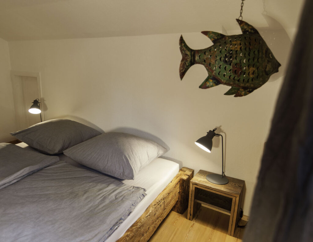 Ein weiterer kleiner Schlafraum bietet mit zwei Einzelbetten, die bei Bedarf zusammengeschoben werden können, Platz für zwei Personen. So finden maximal 6 Personen in der Wohnung Platz.