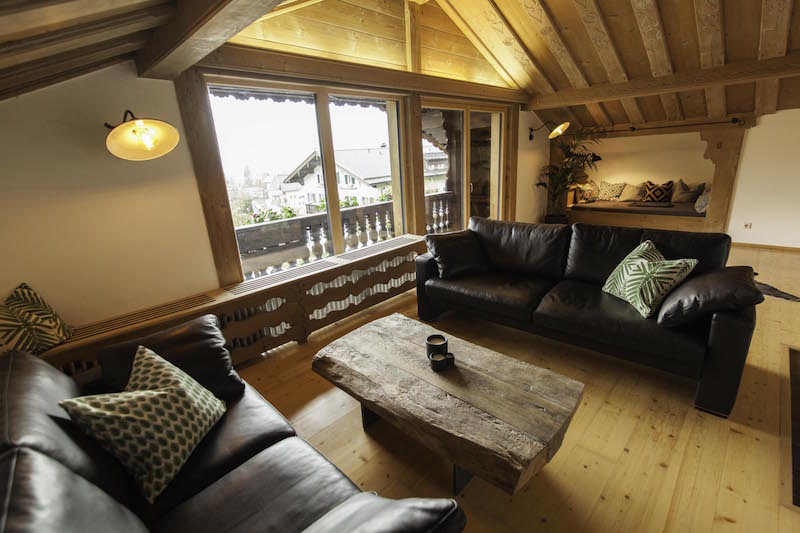 Im Wohnbereich erwarten Sie eine gemütliche Couchecke, ein Smart-TV und als Highlight der Kaminofen für wunderbar entspannende, kuschelige Abende.